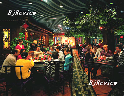 Dazhaimen is a lavish restaurant chain with six outlets in Beijing. Using the elaborate decorations of ornamental wood, brick and stone carvings from Chinese ancient architecture and real antique furniture, Dazhaimeng, literally "the gate of a mansion," intends to create an interior décor simulating that of a distinguished family in a dynastic era.
