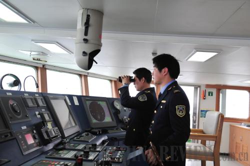 REGULAR INSPECTION: Chinese maritime surveillance officials on a routine patrol mission to the Diaoyu Islands on March 16 (ZHANG JIANSONG)