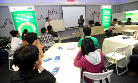 SHARING KNOWHOW: Students from Jilin University and Changchun Normal University in northeast China's Jilin Province attend a lecture on how to start one's own business on May 25 (LIN HONG) |