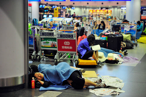 NOWHERE TO GO: On July 22, many passengers remain stranded in the Beijing Capital International Airport (CFP) |