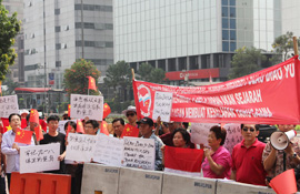 JAKARTA IRE: Overseas Chinese demonstrate in front of the Japanese Embassy in Indonesia on September 18 (GU SHIHONG) |