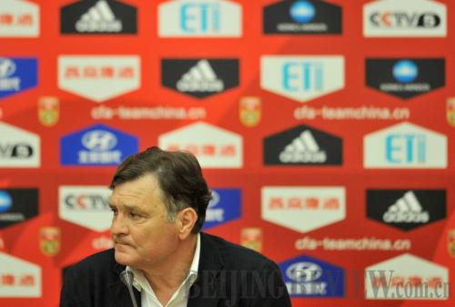 LOSER: Spaniard José Antonio Camacho attends a press conference after the Chinese men's soccer team lost 1-5 to Thailand in Beijing on June 15 (GUO CHEN) |