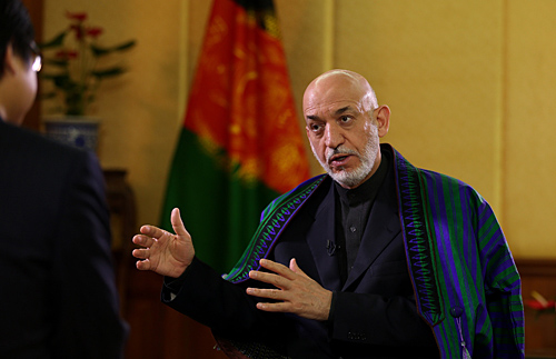 Afghan President Hamid Karzai speaks during an exclusive interview with Xinhua at the Diaoyutai State Guesthouse in Beijing on September 28 (XINHUA) |
