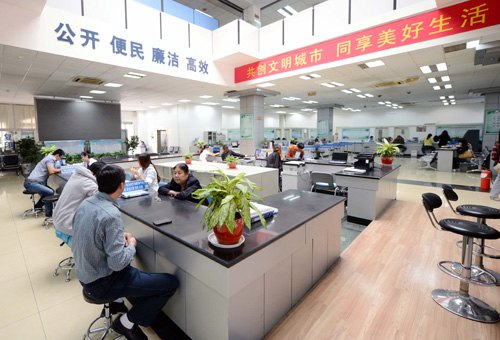 BETTER SERVICE: Citizens go through procedures at the government service hall of Jinan, Shandong Province. China has begun to streamline administration to better serve the economy (ZHU ZHENG) |