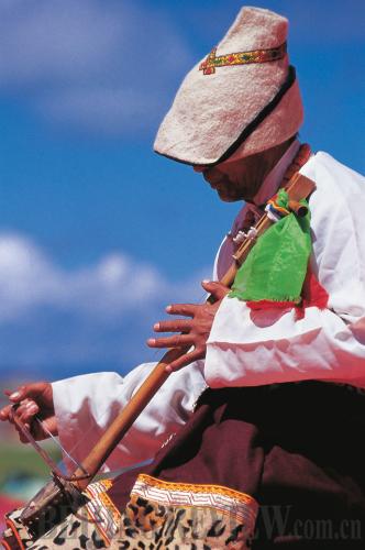 ENDANGERED FOLK MUSIC: A Tibetan musician plays a six-stringed traditional musical instrument made of cow horn in Gannan (LI XIANGDONG) |