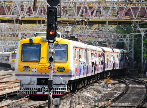 TEEMING WITH TRAVELERS: A train carrying passengers pulls into the station on June 26 in Mumbai, India (WANG PING) |