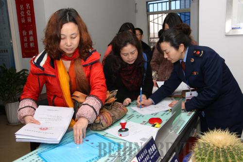 ALL GOOD NEWS: An official (right) explains the new registration policy to an applicant in Suining, Sichuan Province, on March 3 (ZHONG MIN) |