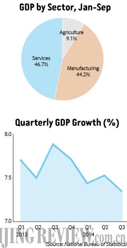 The World Economic Outlook Report released by the International Monetary Fund on October 7 predicted China's economic growth will linger at 7.4 percent in 2014 and slow down to 7.1 percent in 2015.