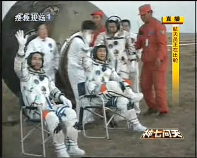 Astronauts Zhai Zhigang, Liu Boming, and Jing Haipeng came back from a 68-hour flight, which included a monumental 20-minute spacewalk on Saturday.