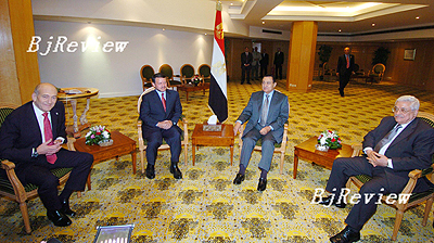 Against this backdrop, a four-party summit was held on June 25 attended by the leaders of Palestine, Israel, Egypt and Jordan. Abbas, Israeli Prime Minister Ehud Olmert, Egyptian President Hosni Mubarak and King Abdullah II of Jordan met in the Egyptian resort Sharm Al Sheikh and discussed how to resolve Palestine's domestic crisis and restart the Mideast peace talks. They also discussed humanitarian aid for the West Bank and the Gaza Strip and assistance for the Palestinian Authority and Palestine's emergency government.