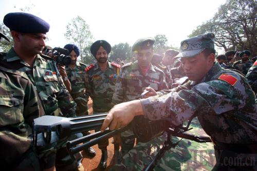 USEFUL FIREARMS: A Chinese soldier introduces a weapon to Indian soldiers in Belgaum, India, on December 6, 2008 during a joint antiterror drill In some circumstances, it is more than fair to say "Chindia" does not mean "China and India"—but rather "China versus India" (LI GANG) | Beyond that, bilateral relations between China and India are even more complex. This is mainly due to the long-running issues regarding territorial integrity.