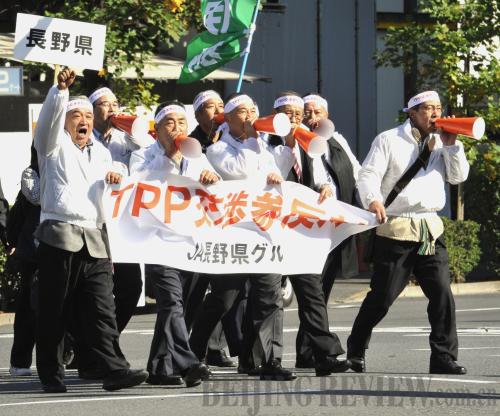 FARMING BACKLASH: Japanese farmers protest against the TPP pact in Tokyo on November 10, 2010 (XINHUA/AFP)