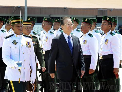 STATE VISIT: Chinese Premier Wen Jiabao attends a welcoming ceremony in Bandar Seri Begawan on November 20 during a state visit to Brunei after attending the East Asia Summit (XIE HUANCHI)