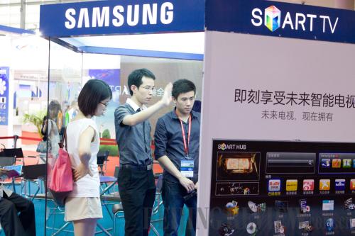 POPULAR BRAND: Customers visit the pavilion of South Korean information technology company Samsung Electronics during the 2012 China International TV Festival in Shenzhen on May 10 (CFP)