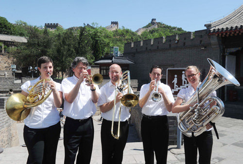 HARMONY: U.S. musicians with the Philadelphia Orchestra visit the Great Wall in Beijing on June 2 (LUO XIAOGUANG)
