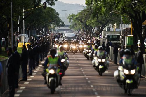 The funeral cortege for former South African President Nelson Mandela drives through Pretoria's streets on December 11 (XINHUA/AFP) |