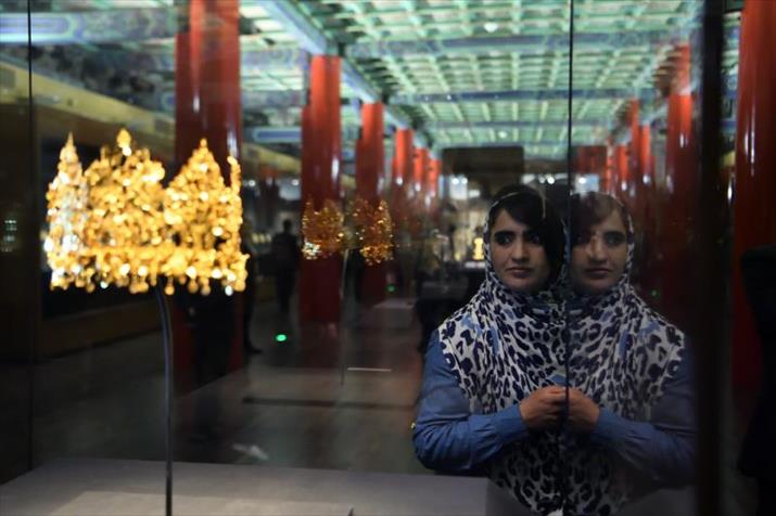 ![]() A woman appreciates a golden crown at the exhibition Afghanistan: Treasures From the National Museum, Kabul at the Palace Museum in Beijing on March 17 (XINHUA)