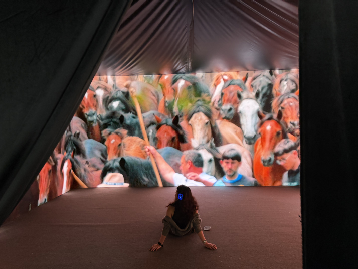 Where A Long Goodbye uses VR to place viewers inside a woman's fading consciousness, Fillos Do Vento: A Rapa, another work in the section, uses a three-wall projection to plunge viewers into the raw physicality of the natural world. Set in the rolling hills of Galicia in northwest Spain, the film tells the story of how local communities strive to preserve Rapa das Bestas, a five-century-old tradition in which villagers wrestle with wild horses to shear their manes and rid them of parasites. Conceived as a traditional feature documentary, the work was made over seven years, with all the patience and painstaking effort the form demands. According to Brais Revaldería, the director, the event takes place for only one week each year, capturing the moments needed to tell the story required years of waiting. But even with years of material in hand, he felt dissatisfied. "The ritual had already been documented many times," he told Beijing Review. "The challenge was how to further narrow the distance between contemporary audiences and an ancient tradition, and that was why we decided to pivot." Adapting a traditional documentary to an immersive form, however, was far from straightforward, and sound effects posed a particular challenge. To build a fully enveloping soundscape, the team recorded each sound separately—the pounding of hooves, the whistle of wind and the rustle of leaves—and only later layered them into a final composition. Smell, too, was central to the film's sensory experience. Upon entering the cave-like screening space at the festival, viewers were immediately met by the mingled scents of grass, mud and salty sea breeze. "Smell can be the most powerful trigger of memories and emotions," Revaldería said, recalling how each time he returns to Galicia, his hometown, the scent of the forest conjures the place before it even comes into view. For him, the 270-degree projection, layered sound and recreated scents of Galicia were there not merely to present the tension between tradition and modernity, but to place viewers in the middle of it. "Documentaries are special because they tell real stories, and that allows people to connect on a deeper, more human level," he said. "There will be endless possibilities for immersive storytelling—whether through VR or any other cutting-edge technology—but in the end, it all comes down to the human connection." A language of its own Beyond the international titles, many of which have already made their mark at leading film festivals abroad, this year's BJIFF also showed how immersive filmmaking in China is beginning to develop a language of its own. That shift was reflected in the festival's decision to introduce, for the first time in its 16-year history, and in the history of major Chinese film festivals more broadly, a competition unit dedicated specifically to VR titles. "The aim is to identify domestic works that can serve as benchmarks for the industry, not only for their technological sophistication but also for their examination of social themes and their search for a distinctly Chinese mode of storytelling," Jin Lina, head and curator of the Boundless ∞ Immersive section and an associate research fellow at the China Film Archive, told Beijing Review. This new section did not emerge in a vacuum. It came a year after the China Film Administration (CFA), the top industry regulator, issued a notice on advancing the development of VR films. For the first time, the medium (AR and MR included) was officially recognized as a new cinematic form and incorporated into the country's box office system. The domestic titles selected this year show how quickly this sector is evolving, taking in a wide variety of forms and drawing on everything from historical events to major contemporary franchises. Xuanzang and the Kucha Kingdom in the Tang Dynasty, for instance, brings to life an episode from the fabled westward journey of the seventh-century Buddhist monk Xuanzang—a historic pilgrimage that later inspired the 16th-century novel Journey to the West. Donning a VR headset and seated in a chair that turns automatically, the viewer is cast as the monk and transported back to Kucha, an ancient kingdom in what is now China's Xinjiang Uygur Autonomous Region. ![]() Visitors to the 16th Beijing International Film Festival (BJIFF) step into the world of Candle in the Tomb XR on April 18 (COURTESY PHOTO)