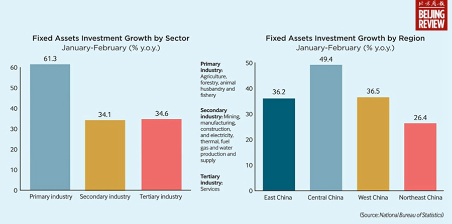 China's fixed assets growth by sector/region in January-February
