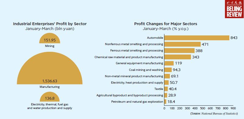 Industrial enterprises'profit by sector in January-March