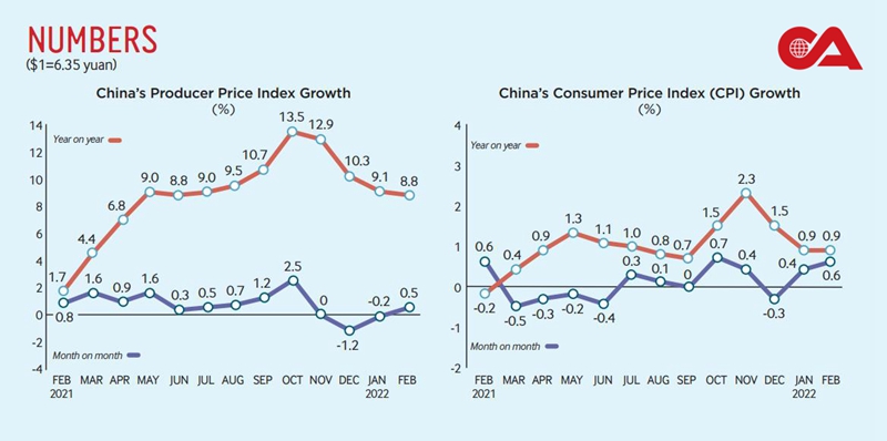 China's CPI and PPI growth in January-February