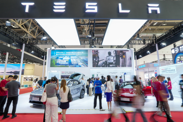 ![]() The Tesla booth at the Third China International Supply Chain Promotion Expo in Beijing on July 19 (XINHUA)