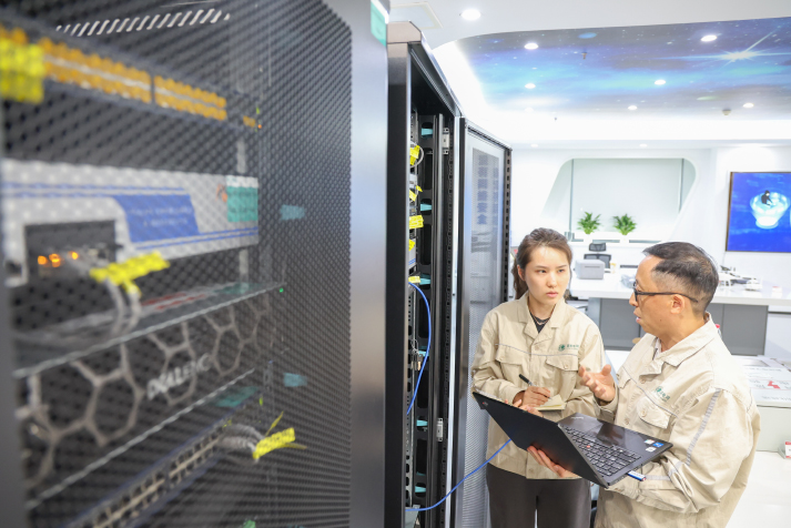![]() Staff members of the Electric Power Research Institute of State Grid Chongqing Electric Power Co. check equipment to protect it against cyberattacks in Chongqing Municipality on September 25 (XINHUA)