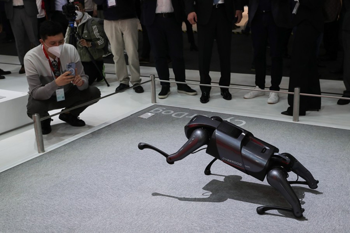 A man records a Xiaomi CyberDog during the Mobile World Congress in Barcelona, Spain, on February 28 (XINHUA) Around 50 Chinese companies, including Huawei, ZTE and Xiaomi, are present at the annual Mobile World Congress (MWC), which opened its doors on February 28. According to the market research company Counterpoint Research, seven out of the top ten smartphone brands most popular in Europe are based in China, and the Chinese manufacturers present at the MWC appear determined to bring this figure higher. In 2020, the COVID-19 pandemic forced the cancelation of the MWC and last year's event had to be scaled down. This year, however, the congress is back with a bang and the participants are again able to reconnect face-to-face.
