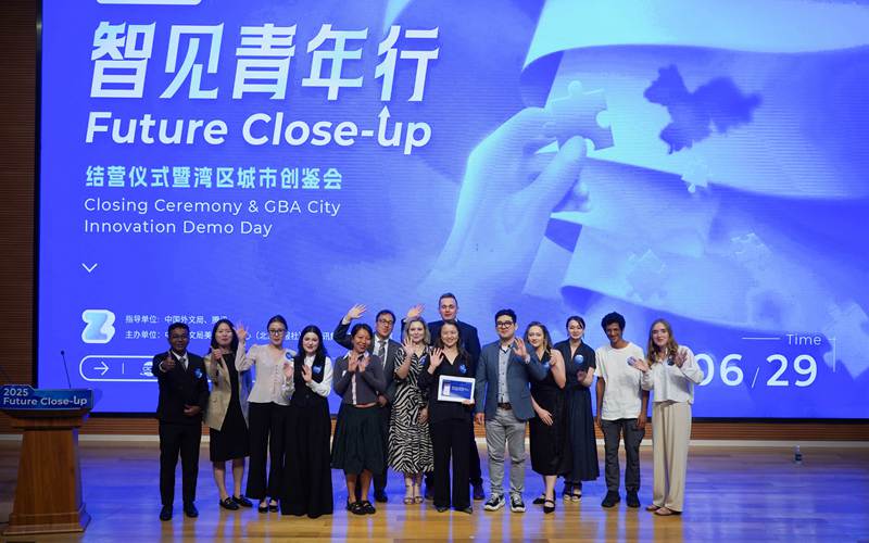 Participants, guests and organizers of the 2025 Future Close-Up program pose for a photo during the closing ceremony, in Shenzhen, Guangdong Province, on June 29 (ZHANG WEI) On June 29, the 2025 Future Close-Up Closing Ceremony and Greater Bay Area (GBA) City Innovation Demo Day took place in Shenzhen, Guangdong Province in south China. Guided by China International Communications Group (CICG) and Chinese tech giant Tencent, the Future Close-Up returned for its third edition since its launch in 2023. The global youth exchange program is co-organized by the CICG Center for Americas and Tencent’s Marketing and Public Relations Department. This year, it was themed Guangdong, Hong Kong and Macao: Driving High-Quality Development in the GBA and brought together 16 young delegates from 14 countries and regions, including China, Russia, Saudi Arabia, Germany, Australia and Brazil. From June 23 to 30, the participants traveled across Shenzhen, Dongguan, Hengqin and Guangzhou in Guangdong Province, as well as Hong Kong Special Administrative Region. Through site visits and in-depth interactions, the 2025 Future Close-Up built a platform for international youth to gain firsthand insights into Chinese modernization. It also showcased the country’s achievements in scientific and technological innovation and regional coordination, offering a vivid window into the dynamics of China’s high-quality development.